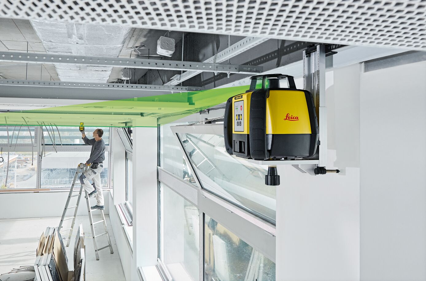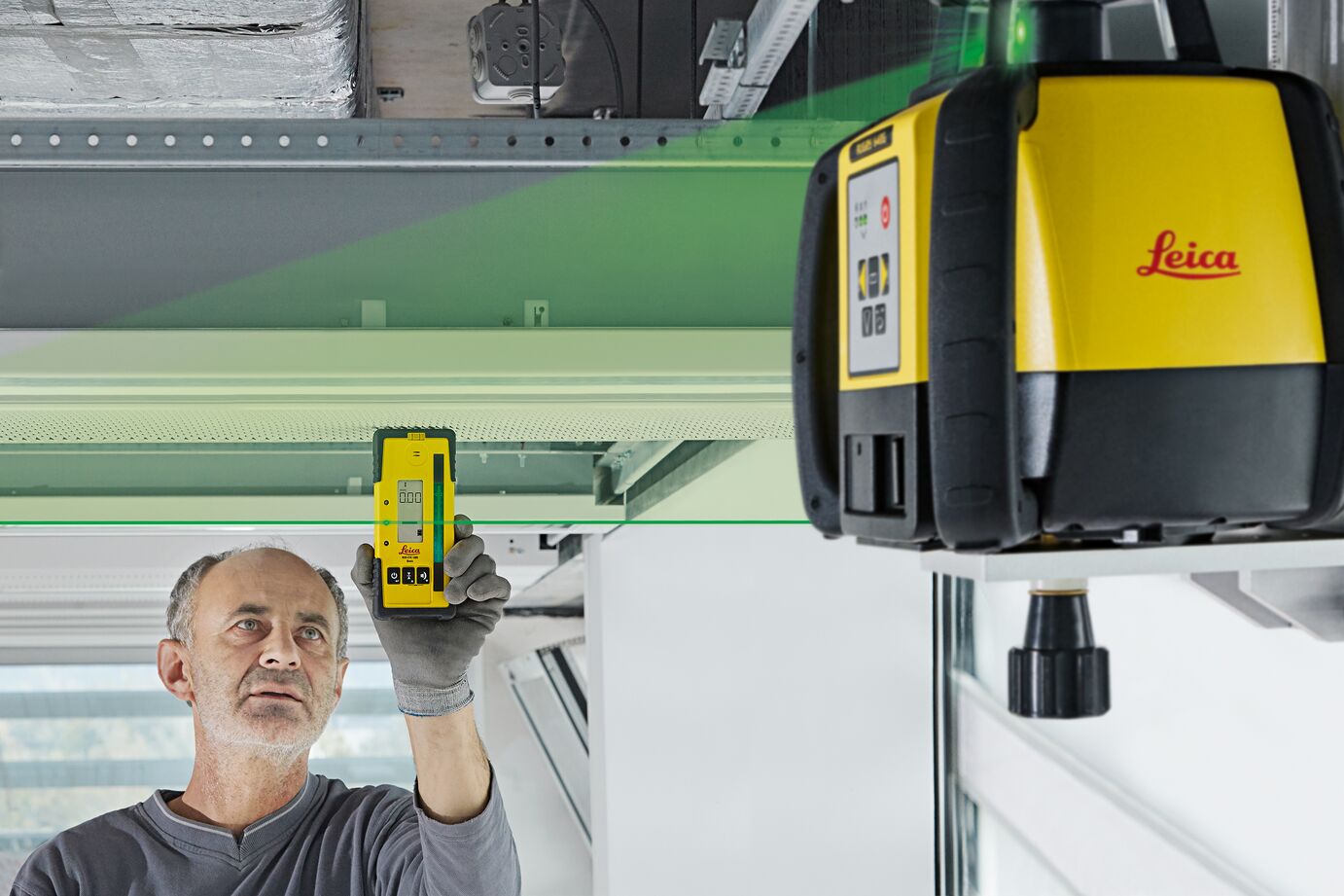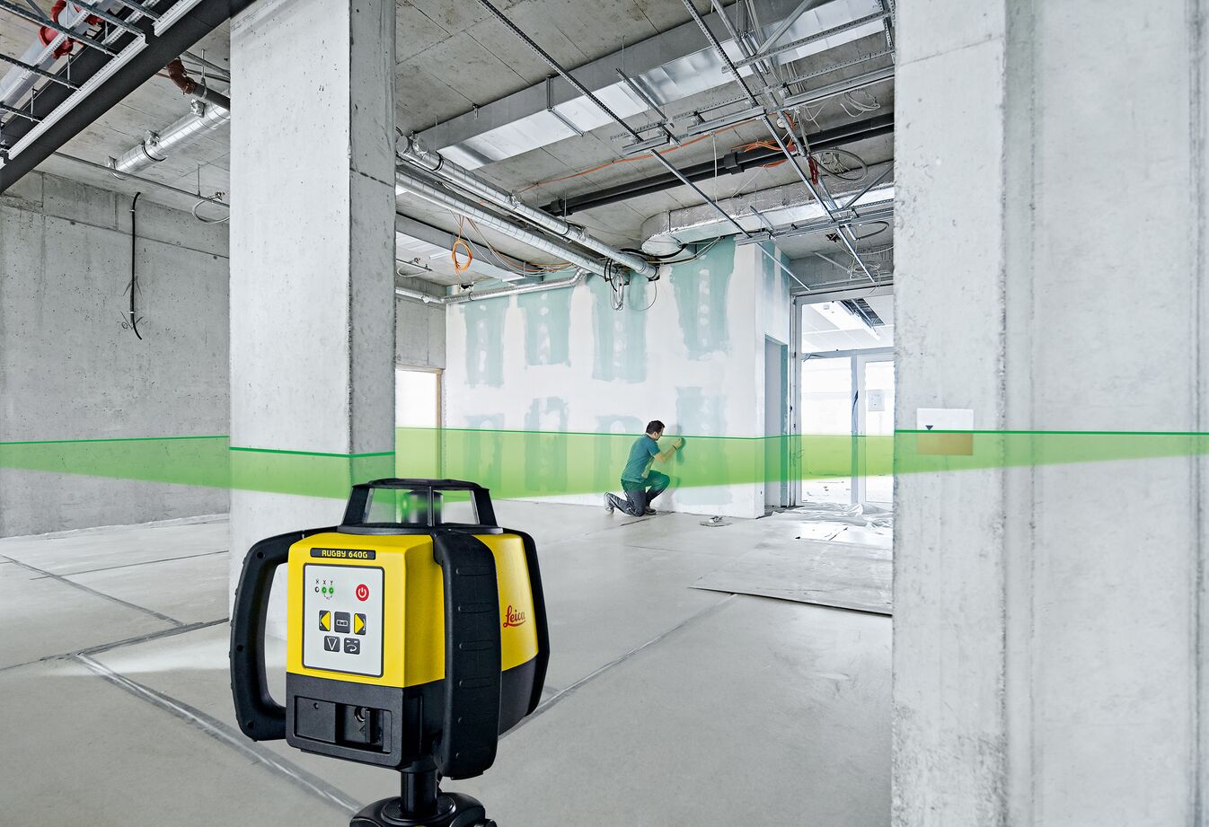 Leica Rugby 640G er en højtydende rotationslaser med grøn laserstråle, der sikrer maksimal synlighed og præcision i både indendørs og udendørs miljøer. Den grønne laser er op til fire gange mere synlig end en rød laser, hvilket gør den ideel til præcise opmålingsopgaver, selv i stærkt lys.